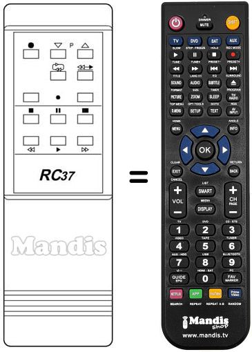 Télécommande qui remplace celle d'origine car elle possède les mêmes fonctions.