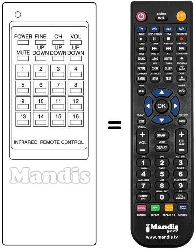 Télécommande qui remplace celle d'origine car elle possède les mêmes fonctions. Il ne s'agit pas d'une télécommande universelle mais d'une télécommande qui remplace celle d'origine. Vous recevrez la télécommande prête à fonctionner, vous n'aurez qu'à mettre les piles. Il n'est pas nécessaire de la programmer. Nous vous garantissons que la télécommande aura exactement les mêmes fonctions que celle d'origine.
