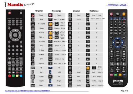 Un document est inclus pour vous aider à utiliser facilement la nouvelle télécommande, en indiquant la correspondance des boutons.