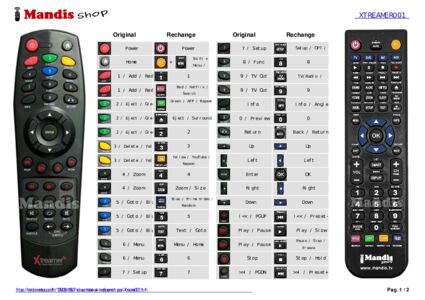 Cette télécommande remplace entièrement votre Xtreamer001 et offre toutes les fonctions de l'originale.