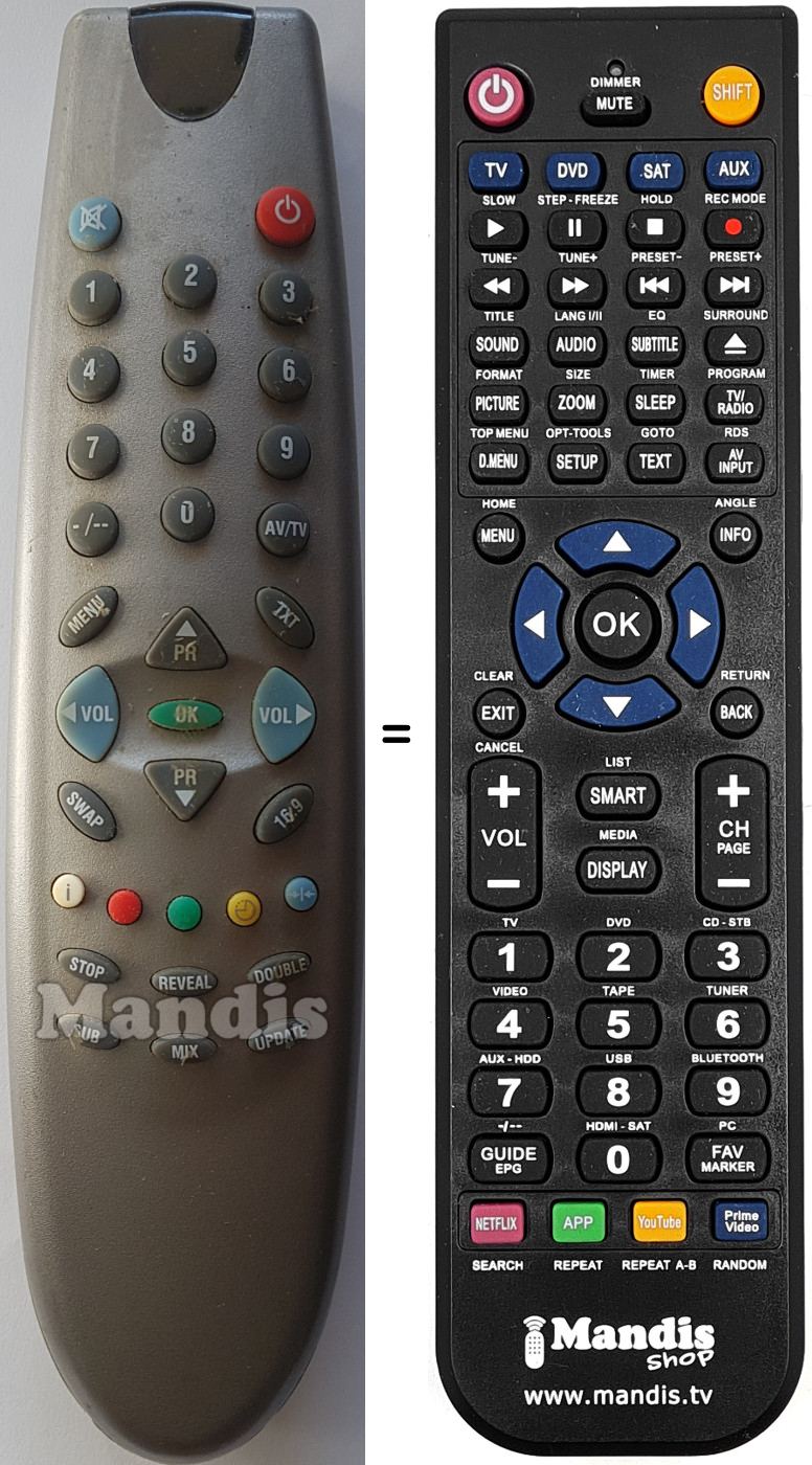 Télécommande qui remplace celle d'origine car elle possède les mêmes fonctions.