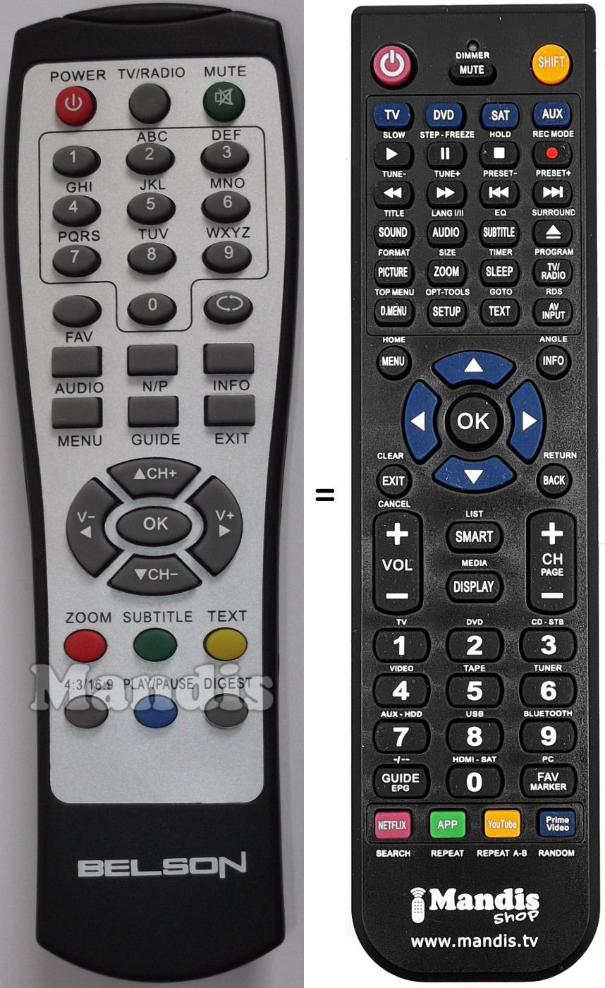 Télécommande qui remplace celle d'origine car elle possède les mêmes fonctions.