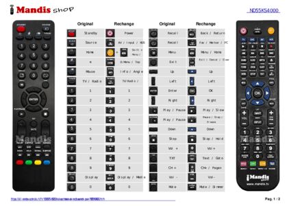 Un document est inclus pour vous aider à utiliser facilement la nouvelle télécommande, en indiquant la correspondance des boutons.