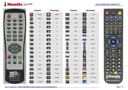 Cette télécommande remplace entièrement votre EasyhomeTDTCompactC et offre toutes les fonctions de l'originale.