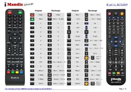 Cette télécommande remplace entièrement votre BL-F32S-HD et offre toutes les fonctions de l'originale.