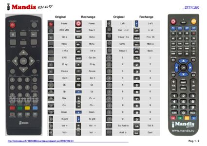 Cette télécommande remplace entièrement votre DTT4160 (RT4160) et offre toutes les fonctions de l'originale.