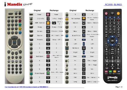 Un document est inclus pour vous aider à utiliser facilement la nouvelle télécommande, en indiquant la correspondance des boutons.