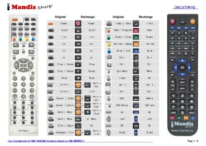 Un document est inclus pour vous aider à utiliser facilement la nouvelle télécommande, en indiquant la correspondance des boutons.