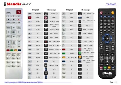 Cette télécommande remplace entièrement votre TSHD1016 et offre toutes les fonctions de l'originale.