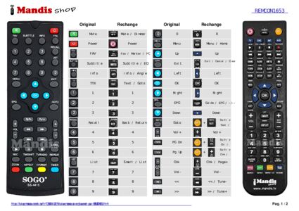Un document est inclus pour vous aider à utiliser facilement la nouvelle télécommande, en indiquant la correspondance des boutons.