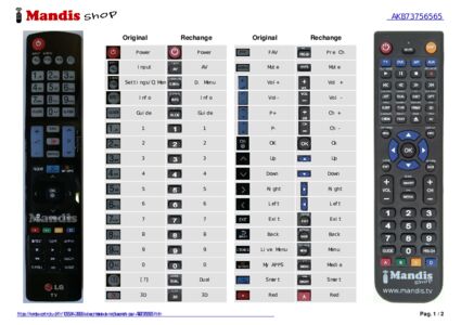 Un document est inclus pour vous aider à utiliser facilement la nouvelle télécommande, en indiquant la correspondance des boutons.