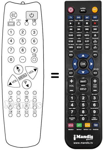 Télécommande qui remplace celle d'origine car elle possède les mêmes fonctions.