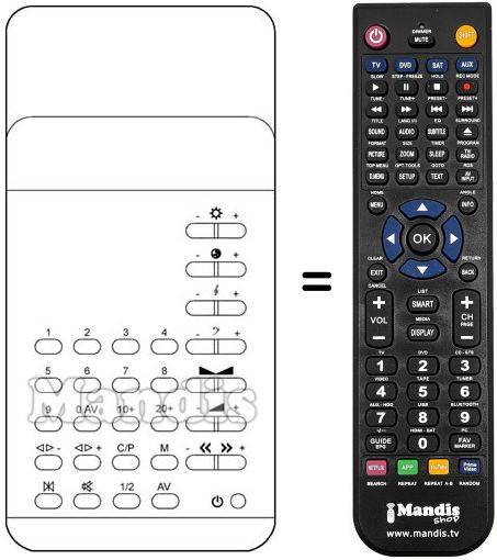 Télécommande qui remplace celle d'origine car elle possède les mêmes fonctions. Il ne s'agit pas d'une télécommande universelle mais d'une télécommande qui remplace celle d'origine. Vous recevrez la télécommande prête à fonctionner, vous n'aurez qu'à mettre les piles. Il n'est pas nécessaire de la programmer. Nous vous garantissons que la télécommande aura exactement les mêmes fonctions que celle d'origine.