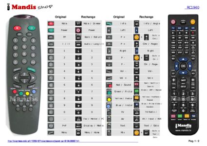 Un document est inclus pour vous aider à utiliser facilement la nouvelle télécommande, en indiquant la correspondance des boutons.