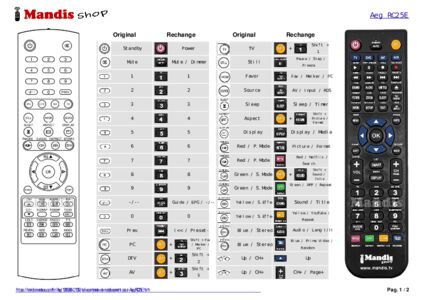 Un document est inclus pour vous aider à utiliser facilement la nouvelle télécommande, en indiquant la correspondance des boutons.