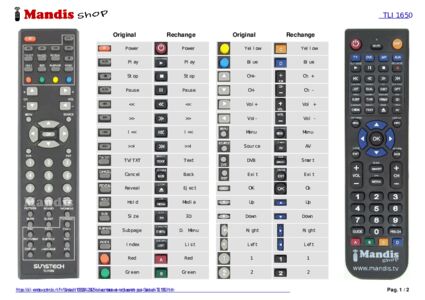 Un document est inclus pour vous aider à utiliser facilement la nouvelle télécommande, en indiquant la correspondance des boutons.