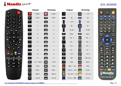 Cette télécommande remplace la plupart des fonctions de votre NA1000HD. Il ne s'agit pas d'une télécommande universelle, mais d'une copie avec la plupart des touches et des fonctions de votre télécommande d'origine.