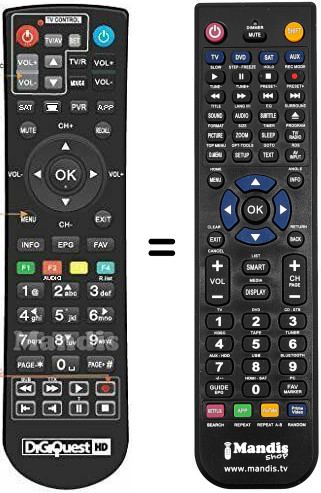 Télécommande qui remplace celle d'origine car elle possède les mêmes fonctions.