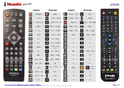 Un document est inclus pour vous aider à utiliser facilement la nouvelle télécommande, en indiquant la correspondance des boutons.