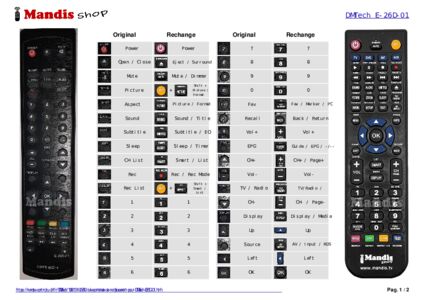 Un document est inclus pour vous aider à utiliser facilement la nouvelle télécommande, en indiquant la correspondance des boutons.