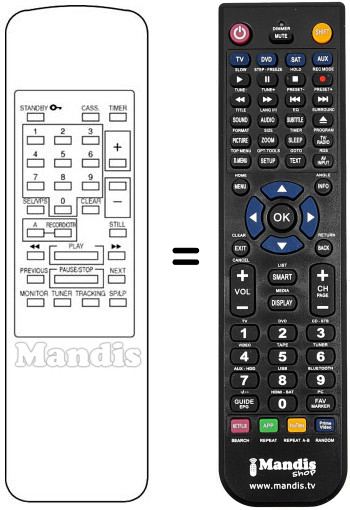 Télécommande qui remplace celle d'origine car elle possède les mêmes fonctions. Il ne s'agit pas d'une télécommande universelle mais d'une télécommande qui remplace celle d'origine. Vous recevrez la télécommande prête à fonctionner, vous n'aurez qu'à mettre les piles. Il n'est pas nécessaire de la programmer. Nous vous garantissons que la télécommande aura exactement les mêmes fonctions que celle d'origine.