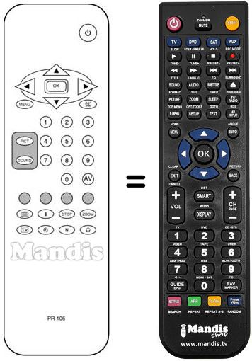 Télécommande qui remplace celle d'origine car elle possède les mêmes fonctions.