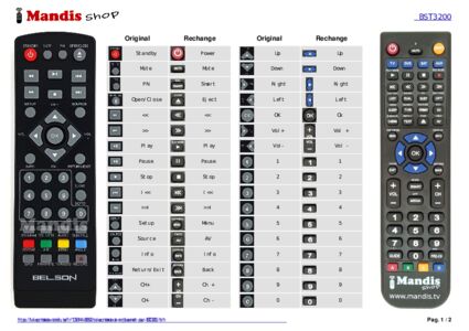 Un document est inclus pour vous aider à utiliser facilement la nouvelle télécommande, en indiquant la correspondance des boutons.