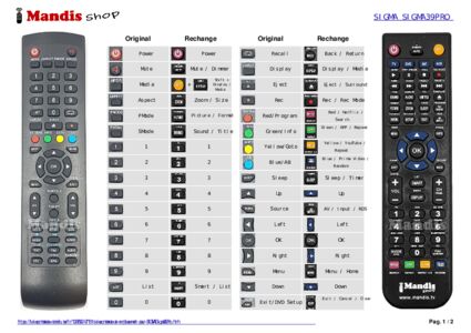 Un document est inclus pour vous aider à utiliser facilement la nouvelle télécommande, en indiquant la correspondance des boutons.