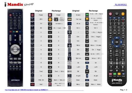 Un document est inclus pour vous aider à utiliser facilement la nouvelle télécommande, en indiquant la correspondance des boutons.