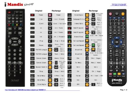 Un document est inclus pour vous aider à utiliser facilement la nouvelle télécommande, en indiquant la correspondance des boutons.