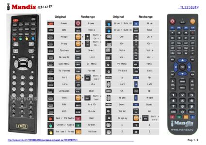 Un document est inclus pour vous aider à utiliser facilement la nouvelle télécommande, en indiquant la correspondance des boutons.