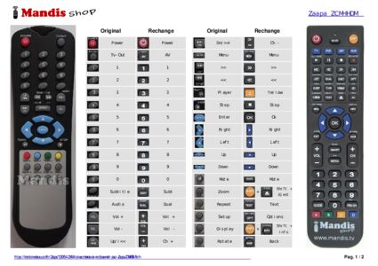 Un document est inclus pour vous aider à utiliser facilement la nouvelle télécommande, en indiquant la correspondance des boutons.