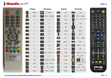 Cette télécommande remplace entièrement votre DVBT-1 et offre toutes les fonctions de l'originale.