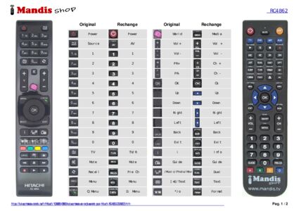 Un document est inclus pour vous aider à utiliser facilement la nouvelle télécommande, en indiquant la correspondance des boutons.