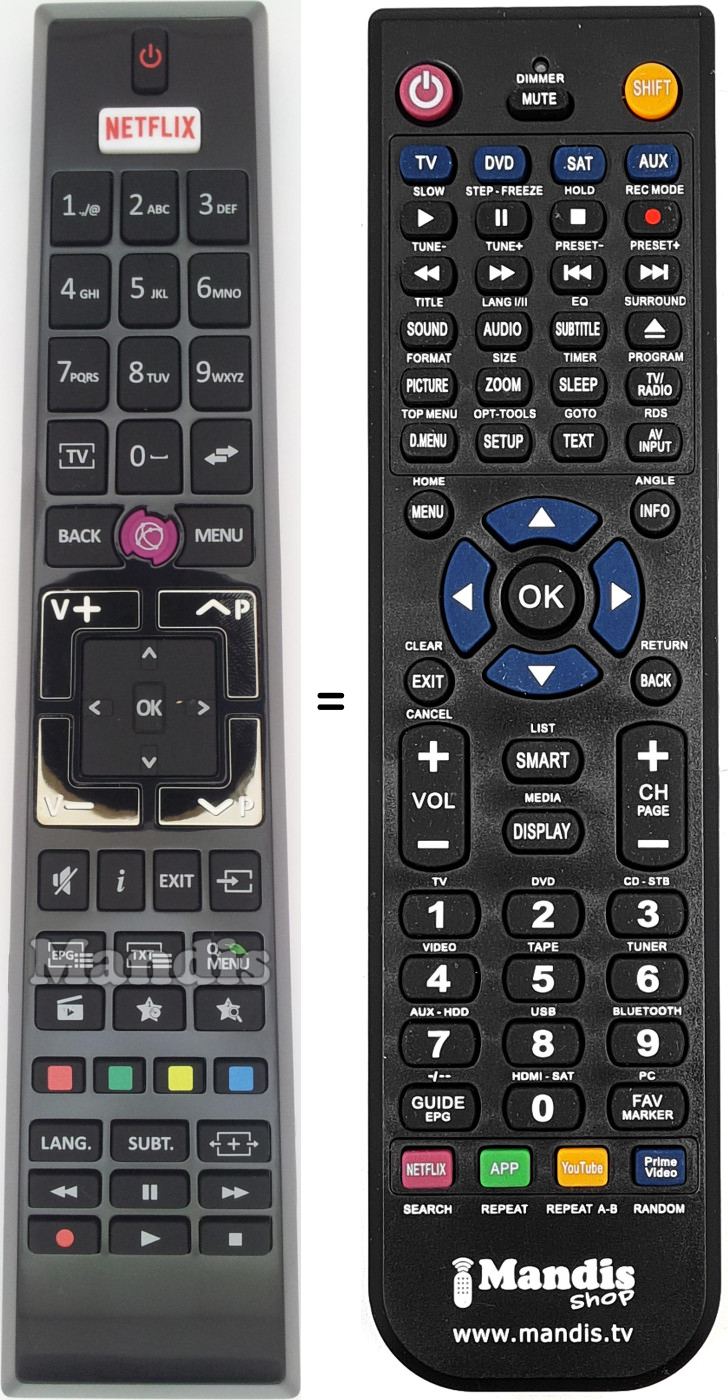 Télécommande qui remplace celle d'origine car elle possède les mêmes fonctions.