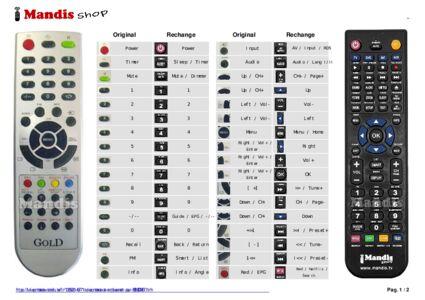 Un document est inclus pour vous aider à utiliser facilement la nouvelle télécommande, en indiquant la correspondance des boutons.