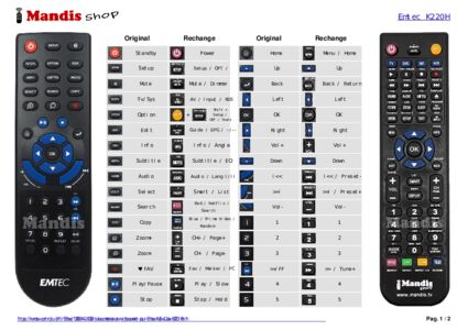 Un document est inclus pour vous aider à utiliser facilement la nouvelle télécommande, en indiquant la correspondance des boutons.
