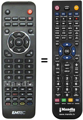 Télécommande qui remplace celle d'origine car elle possède les mêmes fonctions.