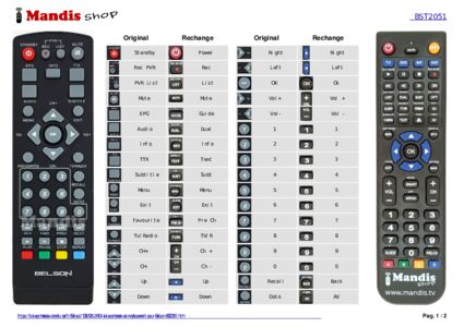 Un document est inclus pour vous aider à utiliser facilement la nouvelle télécommande, en indiquant la correspondance des boutons.