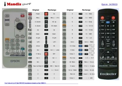 Accueil > Marques > Télécommandes Epson > Télécommande pour Epson 1435033