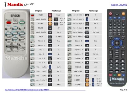 Accueil > Marques > Télécommandes Epson > Télécommande pour Epson 145663900