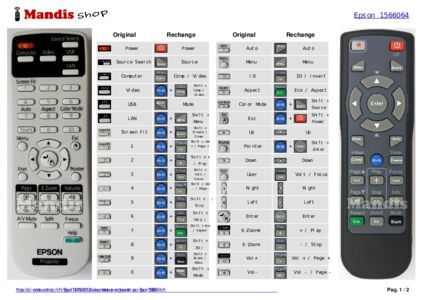 Accueil > Marques > Télécommandes Epson > Télécommande pour Epson 1566064