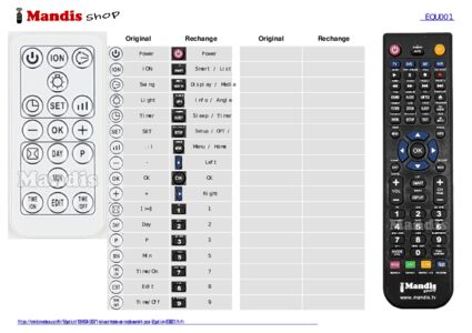 Cette télécommande remplace entièrement votre EQU001 et offre toutes les fonctions de l'originale.