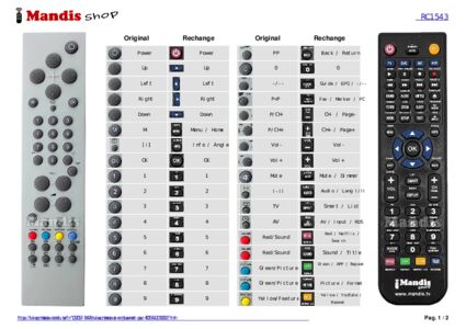 Un document est inclus pour vous aider à utiliser facilement la nouvelle télécommande, en indiquant la correspondance des boutons.