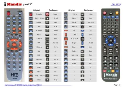 Un document est inclus pour vous aider à utiliser facilement la nouvelle télécommande, en indiquant la correspondance des boutons.