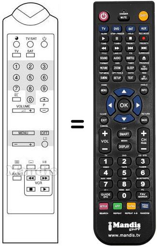 Télécommande qui remplace celle d'origine car elle possède les mêmes fonctions.