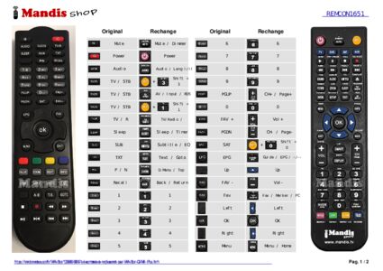 Un document est inclus pour vous aider à utiliser facilement la nouvelle télécommande, en indiquant la correspondance des boutons.