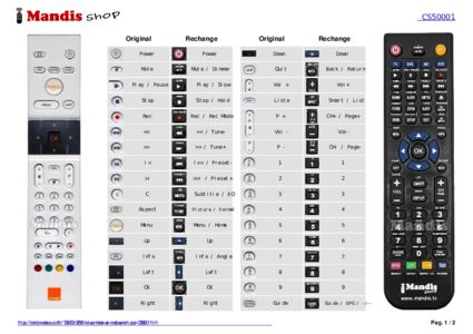 Un document est inclus pour vous aider à utiliser facilement la nouvelle télécommande, en indiquant la correspondance des boutons.