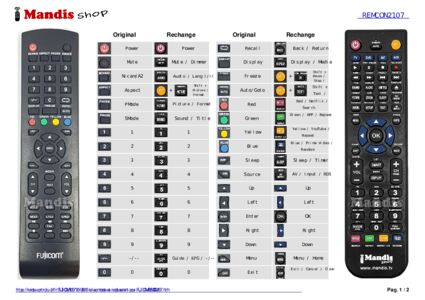 Un document est inclus pour vous aider à utiliser facilement la nouvelle télécommande, en indiquant la correspondance des boutons.