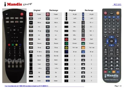 Un document est inclus pour vous aider à utiliser facilement la nouvelle télécommande, en indiquant la correspondance des boutons.